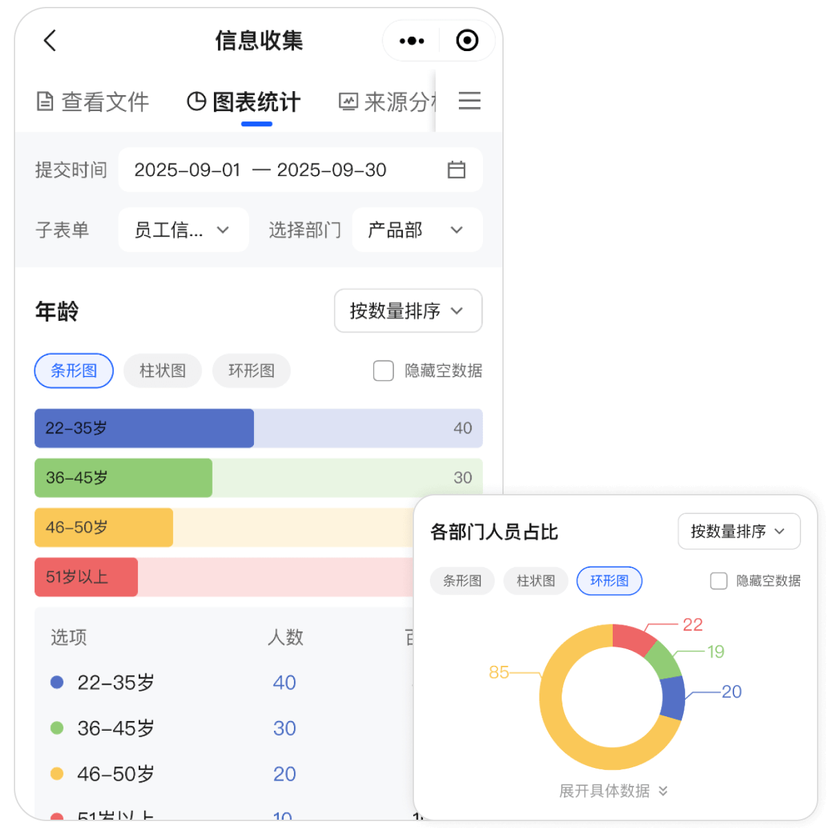 卡片视图:支持筛选、排序,隐藏列、隐藏空数据