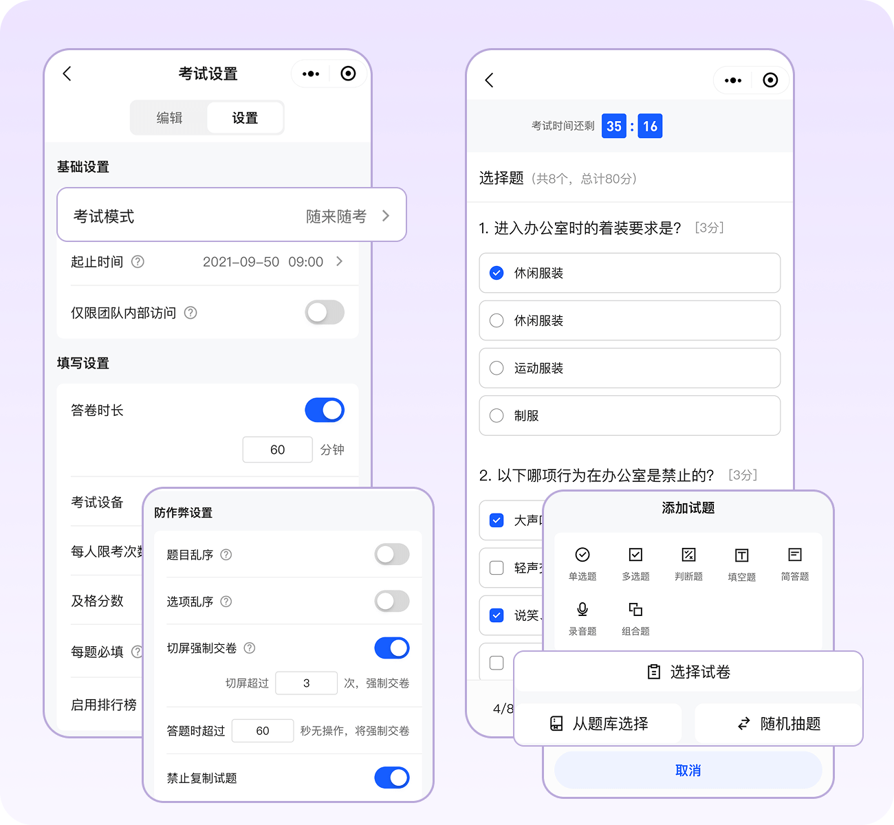 题型丰富,支持显示逻辑,漂亮的外观装扮