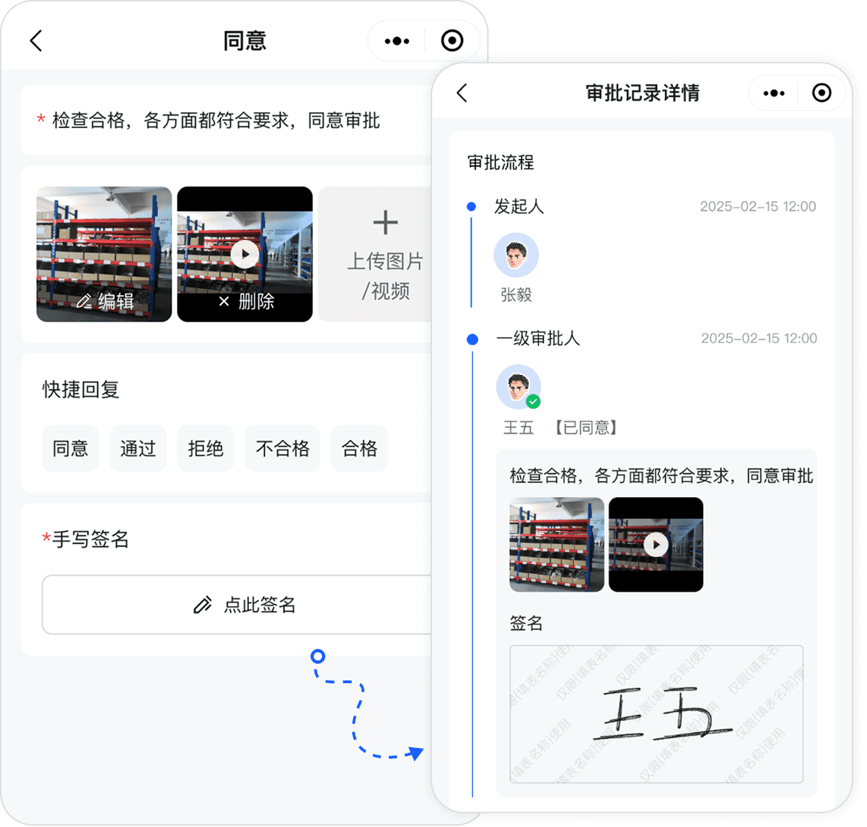 满足检查报告、填写记录、物品申请、请假等常见审批场景。
