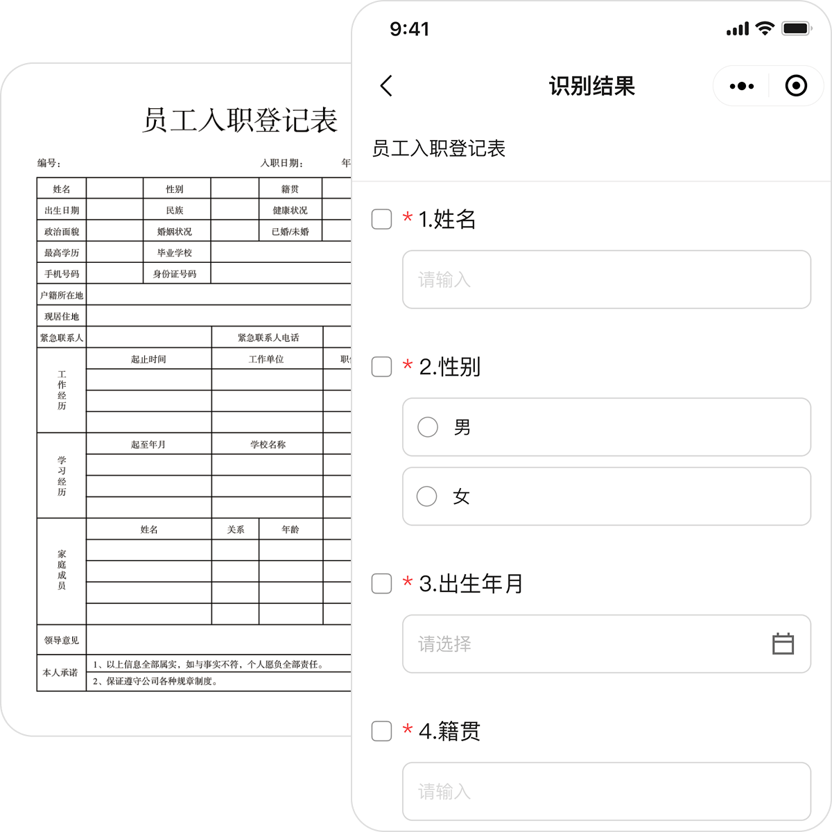 把用户已有电子版或纸质表单通过AI创建快速发布为企鲸表单,识别准确度高速度快