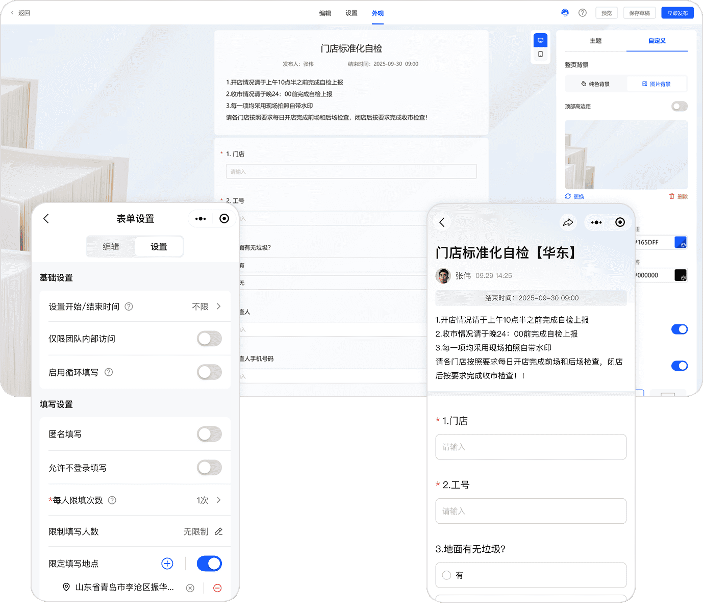 统一定义表单描述、题目、外观、部分设置,供所有子表单共用
