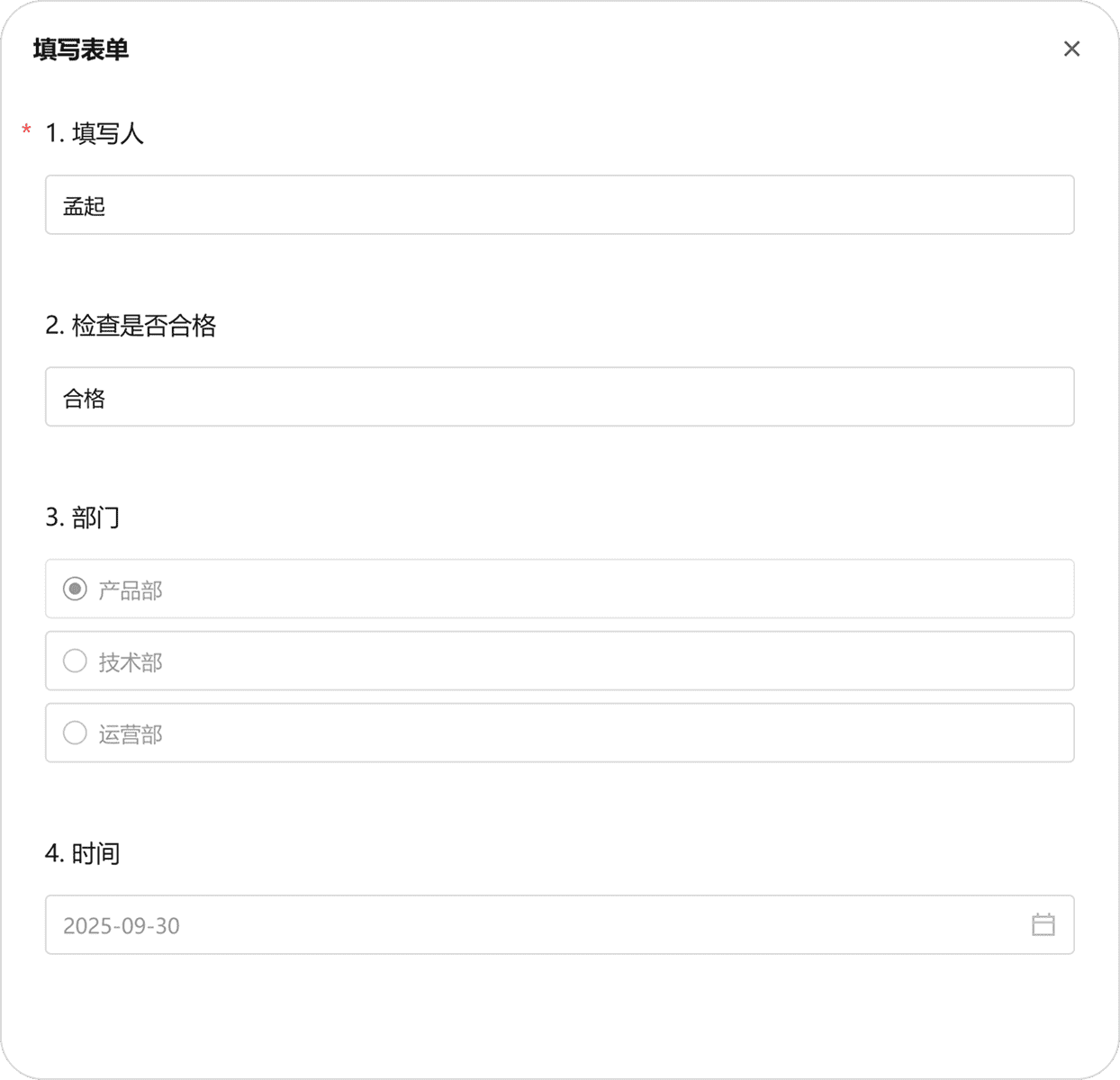 每个子表单有不同的填写链接或二维码,每个子表单可分别限定填写人、分别设置不同的预填数据。