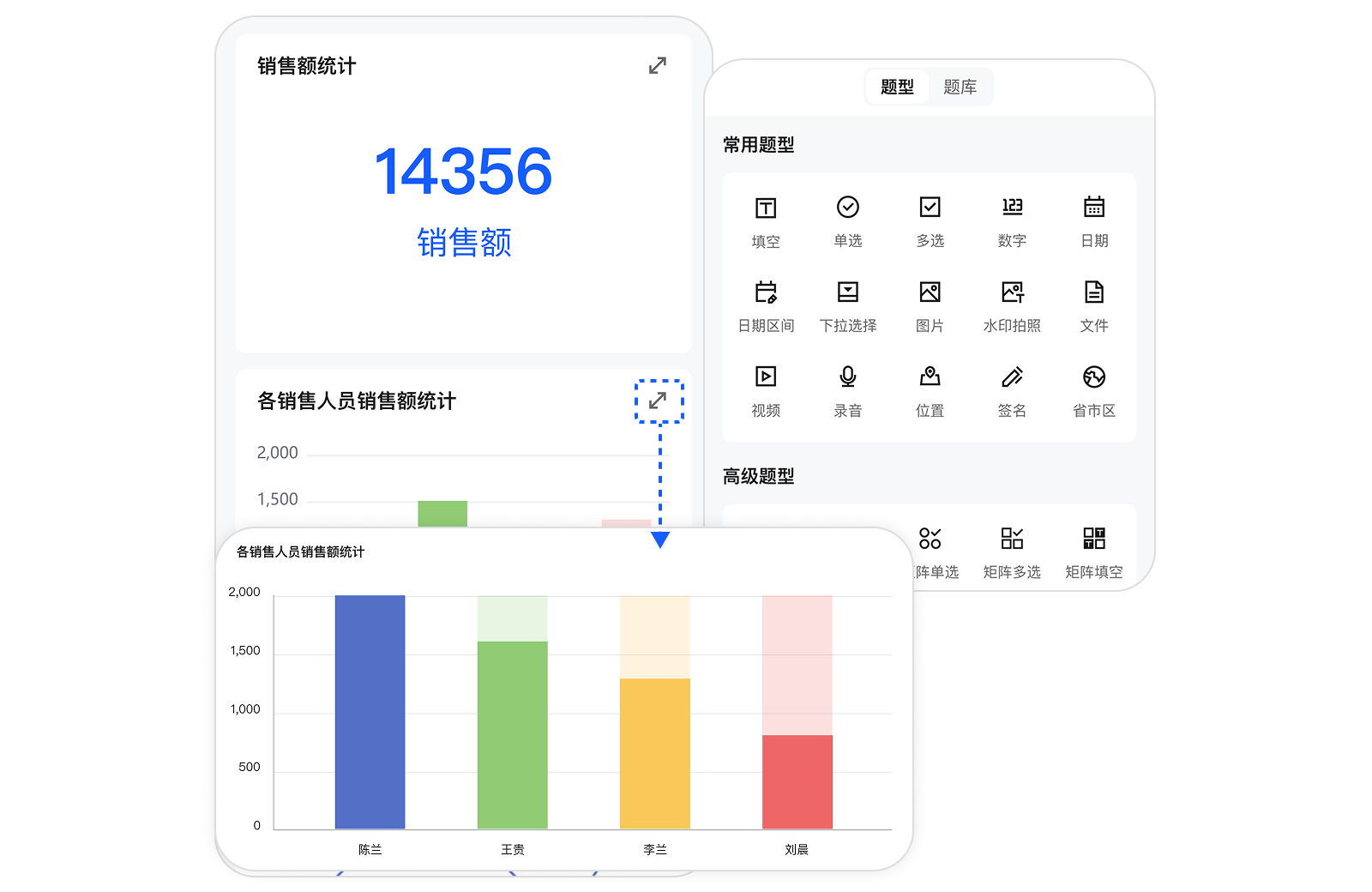 填写业绩后,通过图表统计、仪表盘等在线对数据进行分析。