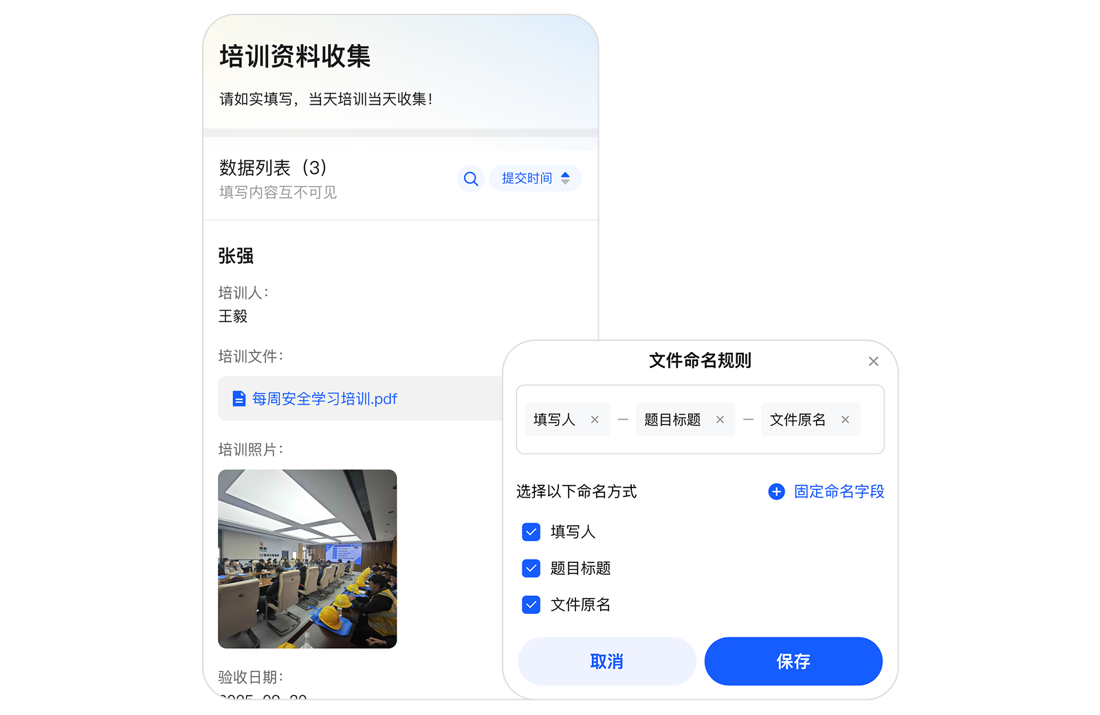 通过企鲸在线收集文件资料,收集后自动汇总,且自动打包整理,快速导出留档保存,提高管理人员的工作效率。