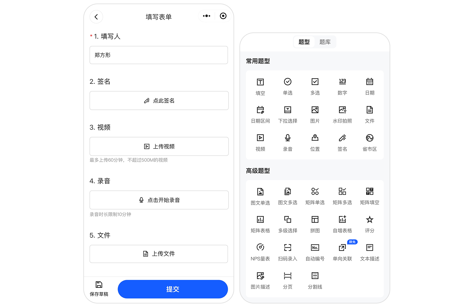 表单可添加文件、图片题型,文件收集更方便;